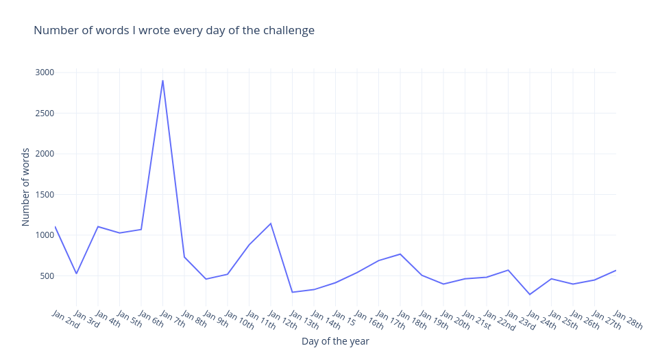 - On Jan 7th I wrote 3000 words.